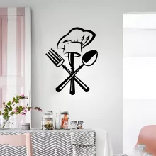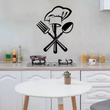 Give your kitchen or restaurant a fun and professional touch with the Creative Cutlery & Chef Hat Wall Sticker. Designed for passionate cooks and food lovers, this removable wall decal instantly adds warmth, charm, and personality to any cooking space. Featuring an elegant silhouette of a chef’s hat paired with a knife and fork design, this mural creates a stylish statement that celebrates your love for food and creativity.