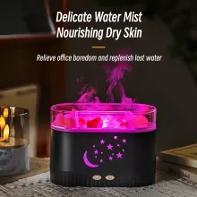 - Multi-Function Design: Combines a crystal salt stone, fire flame effect, and ultrasonic humidification in one compact unit.