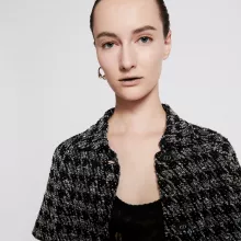 - Iconic Design: Classic black and white Pied-de-poule tweed with a cropped silhouette.