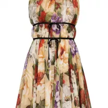 Step into a world of sophistication and charm with the Dolce & Gabbana Beige Floral Silk Mini Dress. Designed for the modern woman who loves both luxury and style, this gorgeous dress brings together the timeless elegance of Italian craftsmanship and the vibrancy of a beautifully colorful floral print. Crafted from 100% luxurious silk chiffon, this airy, sleeveless mini dress is perfect for both daytime chic and evening elegance. Whether you’re attending a garden party, a stylish brunch, or an intimate soirée, this dress will have you turning heads wherever you go.