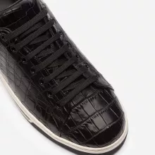 Step into Elegance with Dolce & Gabbana Black Caiman Leather Sneakers