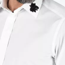This shirt is not only a great investment in style but also in comfort. The 100% cotton fabric allows your skin to breathe while ensuring durability and ease of care. The design features a hidden closure, giving it a sleek and polished appearance, and the embroidery offers a refined yet understated touch.
