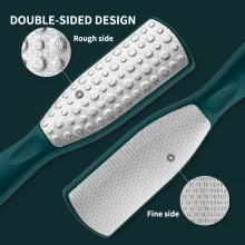 Experience professional-grade foot care at home with this double-sided stainless steel foot file. Its durable materials, ergonomic design, and dual-sided functionality make it the perfect tool to maintain soft, healthy, and beautiful feet. Make rough, dry skin a thing of the past and enjoy revitalized feet with every use.