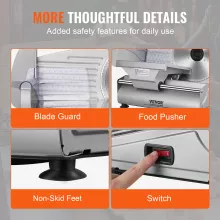 - Enhanced Safety: The included blade guard and food pusher with safety spikes keep your hands away from the blade, ensuring safe slicing.