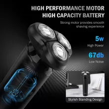 Take your grooming routine to the next level with this advanced electric rotary shaver. Designed for men who value precision and convenience, this shaver delivers a smooth, irritation-free shave whether you prefer wet or dry shaving. The 3D floating blade system glides effortlessly across your face, adjusting to every contour for a clean and even result every time.