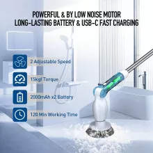 - Complete Cleaning Power: With 8 brush heads and two-speed controls, you can easily switch between light or deep cleaning depending on your needs.