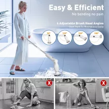 - Adjustable Length & Angle: The scrubber’s handle adjusts from 14.5 inches to 51.2 inches, with 4 adjustable angles (90°, 120°, 150°, 180°). Clean hard-to-reach areas without straining your back or knees.