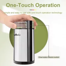 • Adjustable Grind: Control the coarseness by adjusting grinding time — from fine espresso powder to coarse drip coffee grounds.