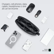 What distinguishes our Electronics Organizer Pouch from others on the market is its focus on user experience and quality. The shielded pocket features an interior lining that protects sensitive electronics from static, ensuring your devices remain secure while being transported. This bag combines practicality with a sleek design, making it an attractive addition to your essential gear.