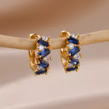 These Blue Zircon Hoop Earrings are more than just a piece of jewelry; they are an expression of elegance and style. Whether you’re attending a wedding, a glamorous party, or simply looking to add a touch of sophistication to your everyday look, these earrings are the perfect choice. Their durable stainless steel construction means they’ll maintain their beauty for years to come, while the sparkling blue zircon stones add that luxurious finishing touch.