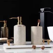 - Four-Piece Set: Includes a soap dispenser, two tumblers, and a soap dish to cover all your bathroom needs in one elegant set.