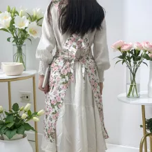 Designed with hand erasable floral patterns and full digital printing, it offers a fresh and elegant touch that never fades. The soft yet durable knit weave feels light against the skin while protecting your clothes from oil, water, and stains — perfect for daily cooking, cleaning, or professional catering use.