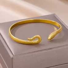 The snake design symbolizes wisdom, strength, and transformation, making it more than just a piece of jewelry—it’s a statement of empowerment. The intricate detailing captures the essence of this majestic creature, wrapping gracefully around your wrist to create a look that is both bold and refined. With its trendy yet timeless appeal, this bangle will quickly become a staple in your jewelry collection.