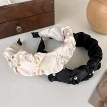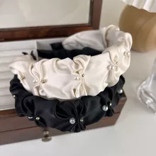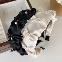 Elegant Satin Pearl Wide Headband for Women – Chic & Versatile Hair Accessory
