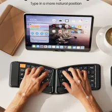 Ready to transform the way you type? Take your productivity anywhere with this sleek, foldable, and ergonomic Bluetooth keyboard.