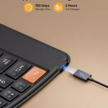 Equipped with a Type-C rechargeable battery, this keyboard offers up to 150 days of standby time. A full charge in just two hours keeps you powered through your workday, short business trips, or vacations. The intuitive fold-to-power-on design adds convenience, saving both time and effort.