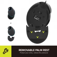 Constructed with a frosted, anti-sweat texture, this mouse is built to last and stay comfortable even during long sessions. Dust-resistant and durable, it ensures a consistent and pleasant experience. The removable palm rest adds flexibility for users who prefer different grip styles, making it adaptable to any hand size or usage preference.