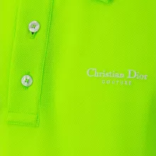 What makes this shirt stand out is its attention to detail. The contrasting Dior logo on the chest brings an understated elegance, while the mother-of-pearl buttons add a touch of luxury. Crafted from soft, breathable cotton, it ensures comfort throughout the day. The ribbed sleeve cuffs and polo-style collar maintain the shirt’s classic look, while the vivid fluo color adds an energetic pop to your wardrobe.