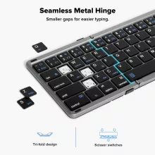 This rechargeable keyboard is built to last. Fully charging in just 1.5 hours provides up to 90 days of standby time, ensuring your device is ready whenever you are. The scissor-switch keys offer a comfortable and responsive typing experience, while the seamless metal hinge ensures durability and smooth folding every time.