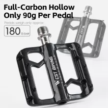 Take your cycling experience to the next level with these ultralight flat bike pedals, designed for riders who demand both strength and precision. Built with a full carbon fiber body and a titanium alloy shaft, these pedals deliver outstanding durability while keeping weight to a minimum. At just 3.17 oz each, they provide a responsive feel that enhances speed and control without adding bulk to your bike.