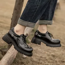 These loafers are more than just footwear—they are a versatile fashion statement. The 2.1-inch (5.5 cm) chunky heel gives you the perfect lift while maintaining comfort for all-day wear. The solid design, accented with detailed stitching, brings a touch of sophistication that complements any outfit, whether casual or smart. A lace-up closure ensures a secure fit, while the rubber outsole provides excellent traction and stability on different surfaces.