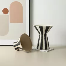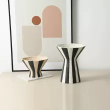 Elevate your home decor with this stunning Geometric Striped Ceramic Vase. This chic and versatile piece effortlessly combines style and function, making it the perfect addition to any room. Whether you’re looking for a unique flowerpot, a decorative storage solution, or a charming accent for your desk or tabletop, this vase does it all. The open, elegant design allows you to display fresh flowers or greenery, while also doubling as a practical storage container for small items, making it a must-have for any modern home.