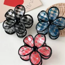 This gingham check hair claw clip is designed to be both functional and fashionable. Whether you’re at home, out with friends, or running errands, this hair claw will keep your hair in place while adding a bit of fun and flair to your look. Its classic flower shape and gingham check design offer a timeless aesthetic that pairs effortlessly with any casual outfit, from jeans to dresses.