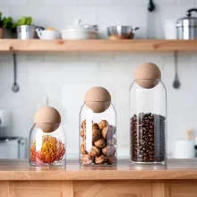 This glass storage bottle isn’t just about keeping things tidy—it’s about elevating your space. The smooth glass surface and round cork lid create a minimalist, organic look that fits effortlessly into modern homes. It’s perfect for those who love keeping their kitchen neat while showcasing the beauty of their ingredients. The airtight seal locks in freshness, protecting your tea, spices, and coffee from moisture and odor. Use it to display colorful fruit teas or artisanal blends—it’s as practical as it is beautiful.