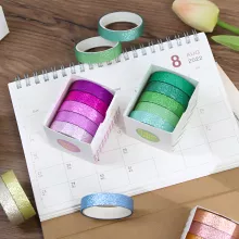 These glitter washi tapes are ideal for everyday creativity as well as special events. Use them to highlight important dates in your planner, decorate holiday cards, or give your gift wrap a festive, eye-catching finish. They’re also a wonderful addition to bullet journals, DIY crafts, and seasonal decorations like Christmas-themed projects.