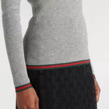 Whether you’re dressing up for a dinner party or enjoying a relaxed day out, this sweater transitions seamlessly between occasions. Its ribbed design ensures a structured yet lightweight feel, while the signature colored bands on the hem and cuffs pay homage to Gucci’s iconic aesthetic, setting this piece apart from the ordinary.