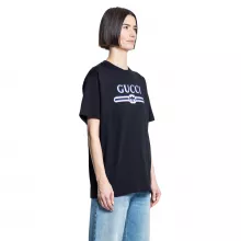 The star of the show is the iconic Gucci maxi logo printed across the front. This bold design instantly elevates your look, making it impossible to go unnoticed. Whether you’re running errands, heading out for a casual meet-up, or simply embracing a laid-back day, this T-shirt ensures you do it with effortless sophistication.