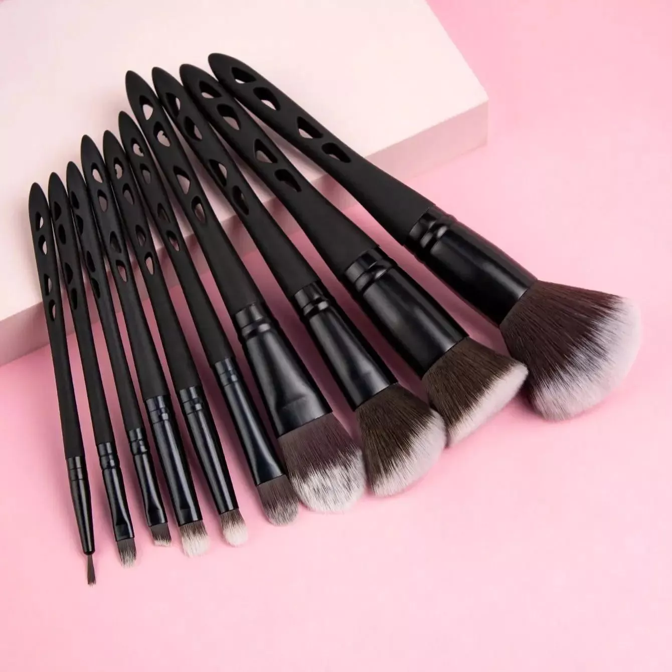 10-Piece Professional Black Makeup Brush Set with Soft Synthetic Bristles