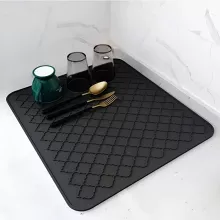 Make kitchen clean-up a breeze with our Dish Drying Mat. This versatile silicone drain pad is designed to absorb water quickly and protect your countertops from hot pots and pans. With its heat-resistant properties and anti-slip surface, you can confidently place your freshly washed dishes, pots, and cups without worrying about slips or scratches. Measuring a generous 16 x 12 inches, this drying mat provides ample space for drying multiple dishes at once, making it an essential tool for any busy kitchen.