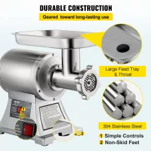 This grinder isn’t just powerful; it’s thoughtfully designed for users of all skill levels. Its wide feeder tube (2.1 inches) minimizes pre-chopping, while its included accessories—such as a meat tray and pusher—streamline the grinding process. Additionally, anti-slip feet ensure stability during use, and the efficient ventilation system prolongs motor life, allowing for consistent performance over time.