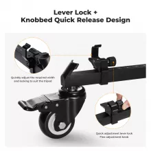 Compact and lightweight, this tripod dolly is easy to transport and set up. It folds down to just 15.2 inches and weighs only 5.7 pounds, making it ideal for photographers and videographers on the go. An ergonomic handle and convenient storage bag make carrying a breeze, so you can focus on your creative work instead of struggling with equipment.