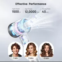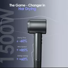 With a maximum wind speed of 40 m/s and a powerful 1600W motor, this hair dryer cuts your drying time by more than half compared to standard dryers. Its intelligent temperature control system adjusts heat 100 times per second, keeping it consistent and safe for all hair types — from fine and fragile to thick and curly. The ultra-lightweight design means you can style longer without arm fatigue, and the low-noise operation makes it a joy to use anytime, anywhere.