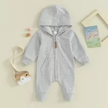 Keep your little one snug and stylish all season long with this adorable hooded baby jumpsuit. Perfect for both boys and girls, this zip-up romper is designed to provide ultimate comfort while offering a chic look for your baby. Crafted from a soft cotton blend, it’s perfect for cooler weather, ensuring your baby stays cozy without compromising on style.