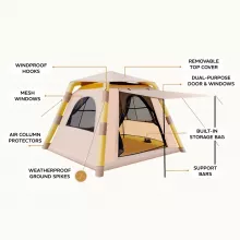 Don’t let complicated tents slow you down. Elevate your outdoor experience with a tent that’s as ready for adventure as you are. Enjoy comfort, convenience, and reliability in every camping trip with this inflatable 4-season tent. Set it up in minutes and make every moment in nature unforgettable.