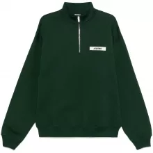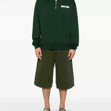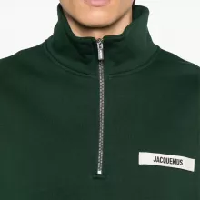 This sweatshirt is crafted from high-quality cotton with a plush interior that ensures all-day comfort. The iconic Jacquemus monogram patch on the front adds a distinctive and luxurious touch, while the ribbed cuffs and hem guarantee a snug yet flexible fit. A high collar paired with a front zipper closure enhances its practicality and versatility, giving it a contemporary edge that complements your wardrobe effortlessly.