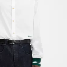 Whether you’re heading out for a relaxed brunch, enjoying a casual evening with friends, or looking for a stylish alternative for everyday wear, the Jacquemus La Chemise Cotton Baseball Shirt fits every occasion. Its breathable cotton fabric keeps you comfortable while its baseball-inspired design adds a sporty edge to your wardrobe. The embroidered monogram ensures you stand out, making it a unique piece that blends casual and luxurious effortlessly.