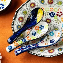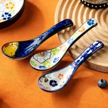 Japanese Style Ceramic Soup Spoon with Floral Print – Elegant Tableware