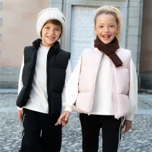 Made with a waterproof exterior, this jacket is built to handle rainy afternoons, snowy mornings, and everything in between. Its soft down filling provides excellent insulation without adding bulk, keeping children warm while allowing them to move freely. The sleeveless vest design gives extra layering flexibility, making it suitable for unpredictable weather or for pairing over sweaters and long-sleeve tops.