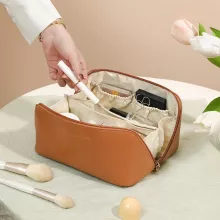 This makeup bag combines practicality and modern style, giving you a storage solution that looks as good as it works. Crafted from high-quality PU leather, it offers a smooth, durable finish that is resistant to wear and easy to clean. The secure zipper closure keeps your items safe, while the solid color design adds a touch of sophistication to your daily routine.