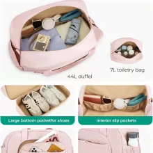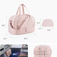 This bag is thoughtfully designed with multiple compartments to keep your essentials neatly stored. A spacious shoe compartment at the bottom fits up to two pairs of shoes, while the included toiletry bag helps you stay organized on the go. Measuring 19.3″L x 8.7″W x 16.1″H, it meets most carry-on size requirements and easily fits under airplane seats. Quick-access zip pockets let you grab your passport, phone, or tickets in seconds. Plus, its durable yet lightweight fabric (only 1.17 lbs) makes carrying it effortless.