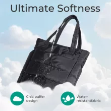 Crafted from soft, high-quality fabric, this tote is both stylish and practical. Its puffer design adds a trendy touch while also protecting your laptop and other valuables. The water-repellent finish means sudden rain showers are no problem—simply wipe it clean and carry on. Built to last, it’s the kind of bag you’ll reach for every single day.