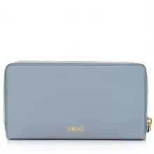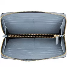 Large Cornflower Grainy Leather Gold Monogram Zip Around Clutch Wallet: Timeless Elegance Meets Modern Functionality