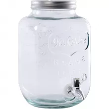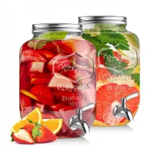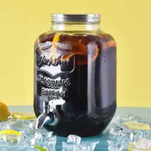 Bring charm and convenience to your gatherings with this large-capacity glass mason jar beverage dispenser. Designed to hold either 1.3 gallons (5 liters) or 1.05 gallons (4 liters), this crystal-clear jar is perfect for keeping your favorite drinks fresh and chilled. Whether you’re pouring ice-cold lemonade on a hot summer day or serving fruity sangria at a party, the wide-mouth opening makes filling and adding fresh fruit effortless.