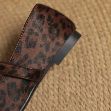 Step into timeless elegance with these women’s leopard horsehair Mary Jane flats. Designed for modern women who value both comfort and style, these shoes blend classic charm with a bold animal print. The soft horsehair upper paired with a polished metal buckle makes them perfect for elevating your everyday outfits without sacrificing ease. With a 0.4-inch heel, they’re ideal for all-day wear, whether you’re running errands, heading to work, or enjoying a casual day out.