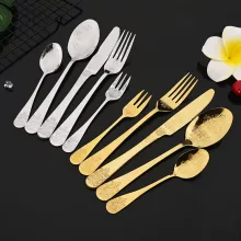 Luxury 20-Piece Vintage Stainless Steel Cutlery Set – Silver Carved Flatware