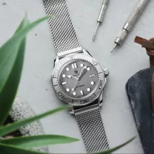 This watch is engineered to perform under pressure. With a 100-meter (328 ft) water resistance rating, it’s ideal for swimming, snorkeling, and recreational diving. The scratch-resistant sapphire crystal ensures a crystal-clear view of the dial, while the luminous markers keep time visible even in low-light conditions. The stainless steel case and band provide strength and style, and the automatic self-wind movement ensures you’re always on time—without the need for a battery.
